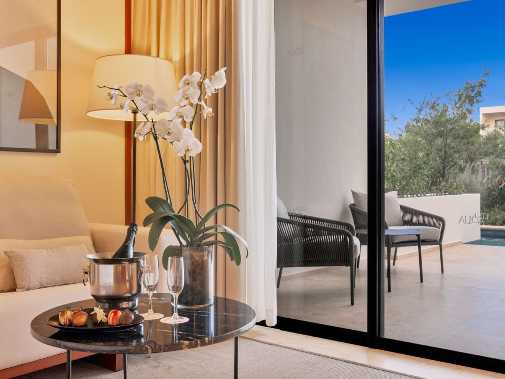 Enjoy the luxury and beauty of the Junior Suite, a space that is thoughtfully designed to deliver an unmatched sense of comfort within a serene natural setting. Take in the stunning views from your private terrace and admire every corner of the resort as you unwind.